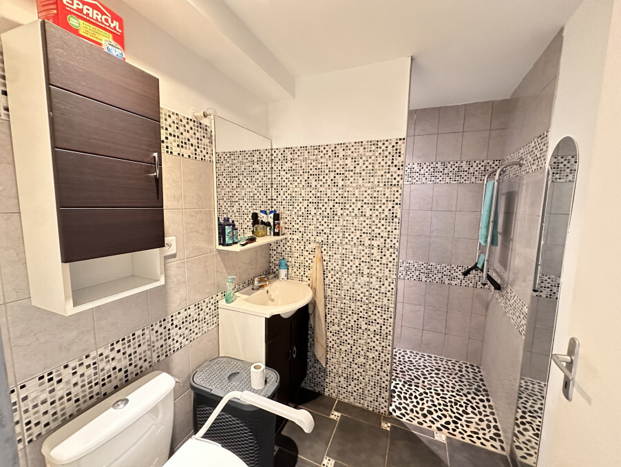 Un troisième logement T2 de 48 m2 environ, composé d'une pièce de vie avec cuisine ouverte, un coin rangement en mezzanine, une salle d'eau avec WC et une chambre avec terrasse privative.