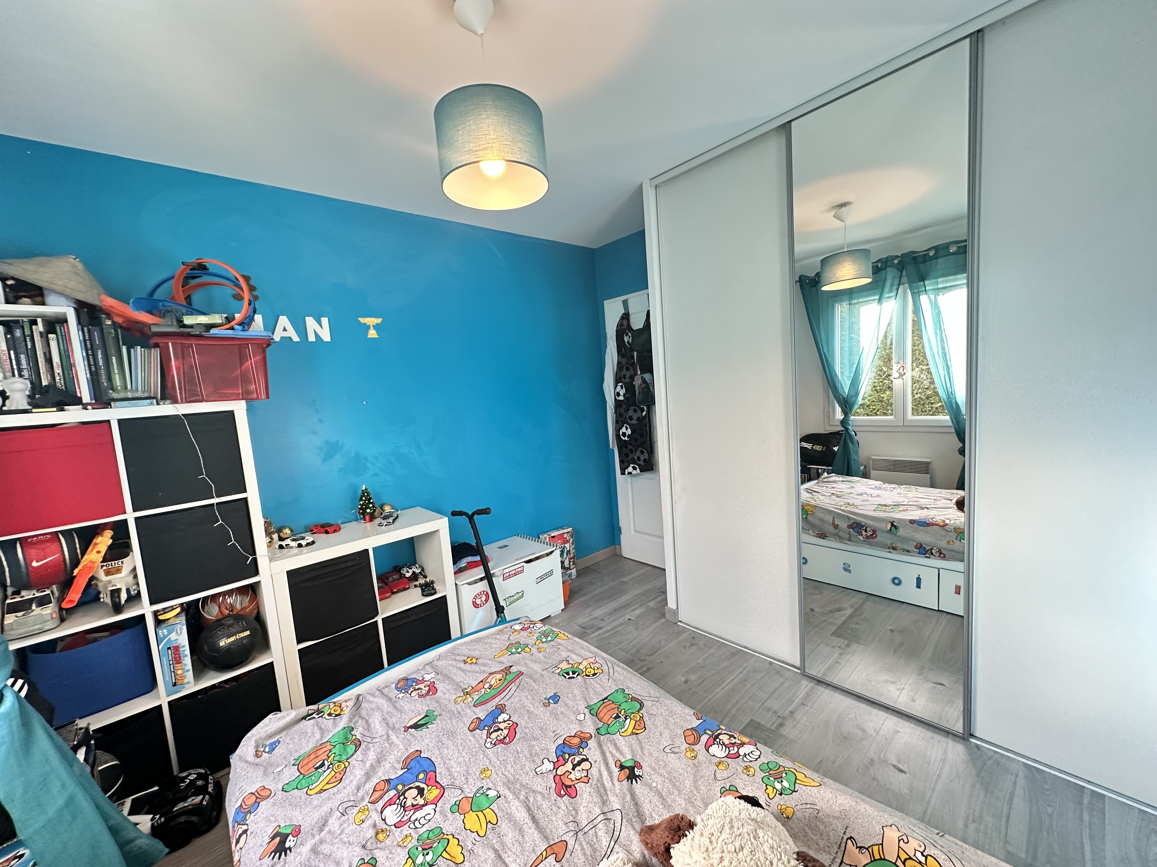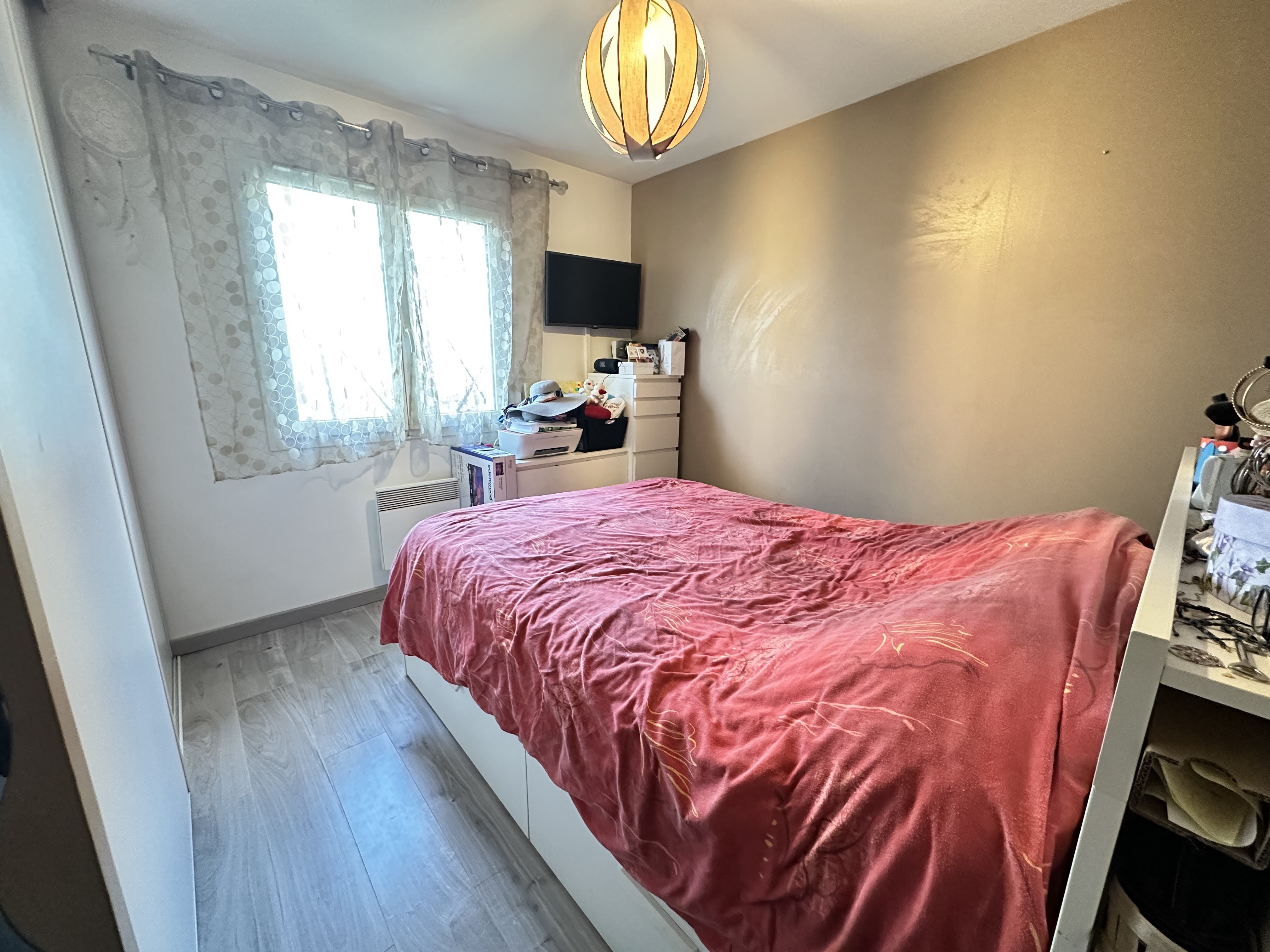 Dès l’entrée, un placard vestiaire apporte un espace de rangement pratique, de plus la pièce de vie bénéficie d’un accès direct à la terrasse, à la piscine et au jardin.