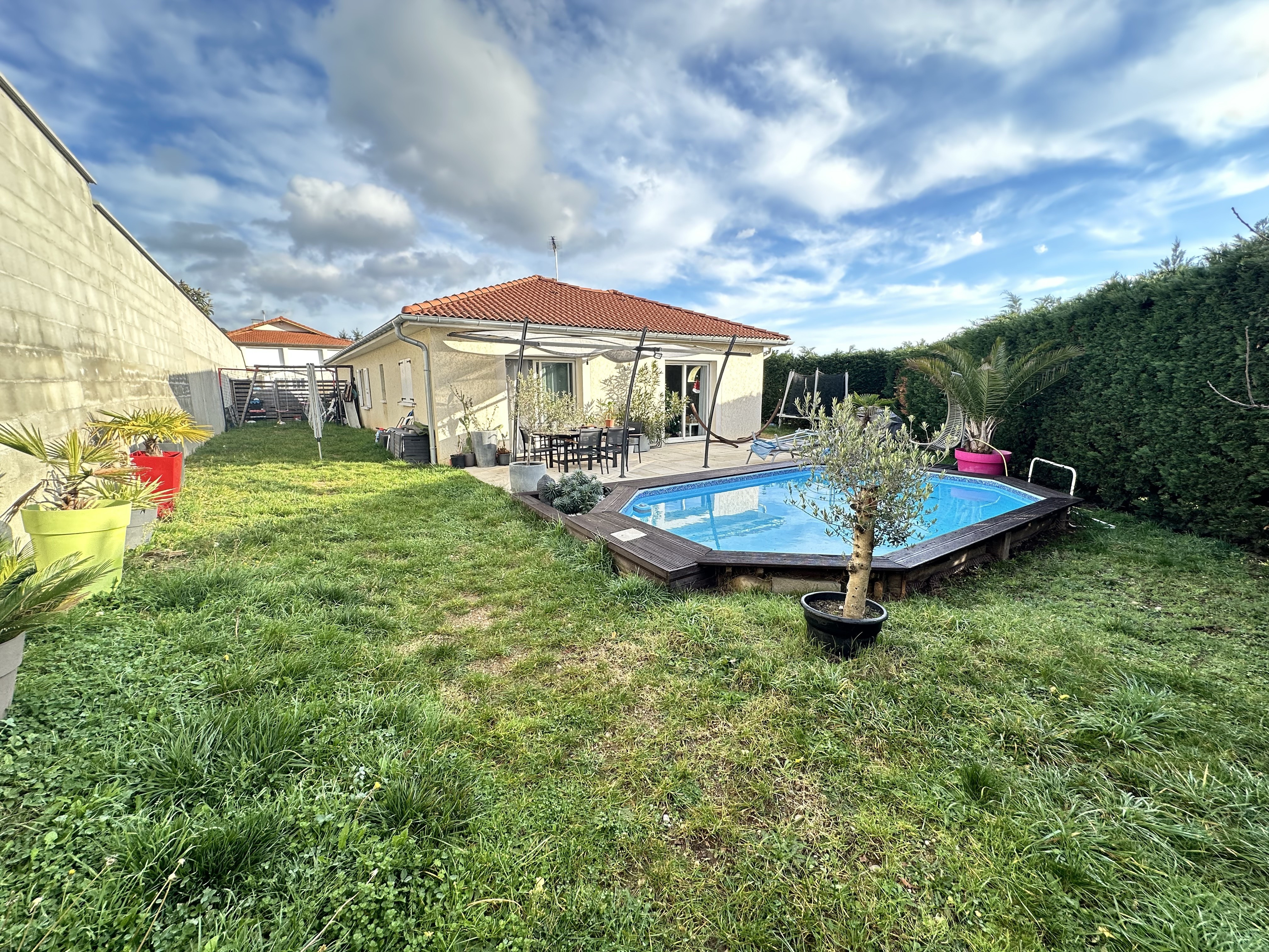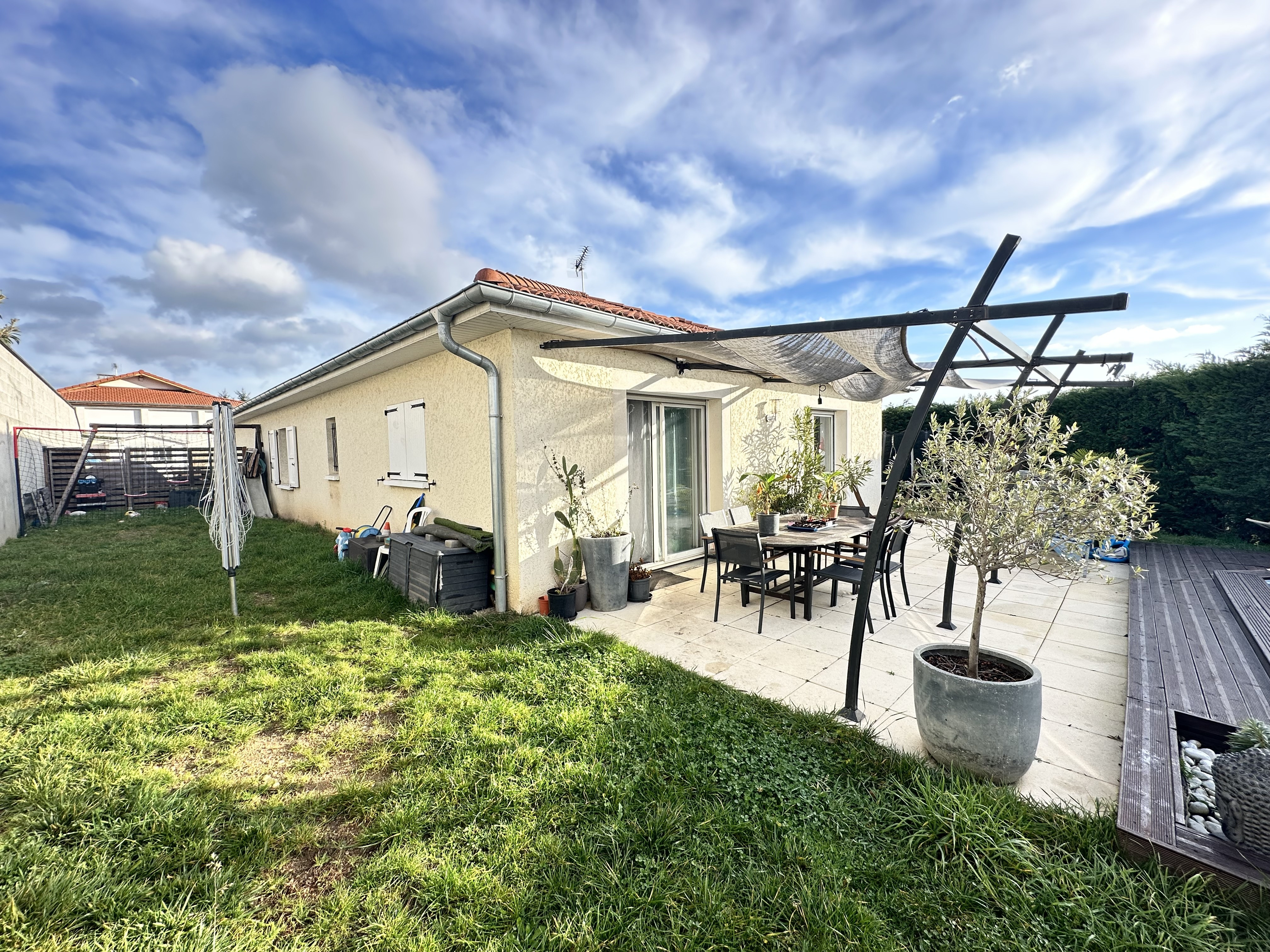 Maison de plain-pied construite en 2010 sur une parcelle de 700m2, offrant une grande pièce de vie lumineuse de 45m2 environ avec cuisine ouverte, équipée et aménagée.